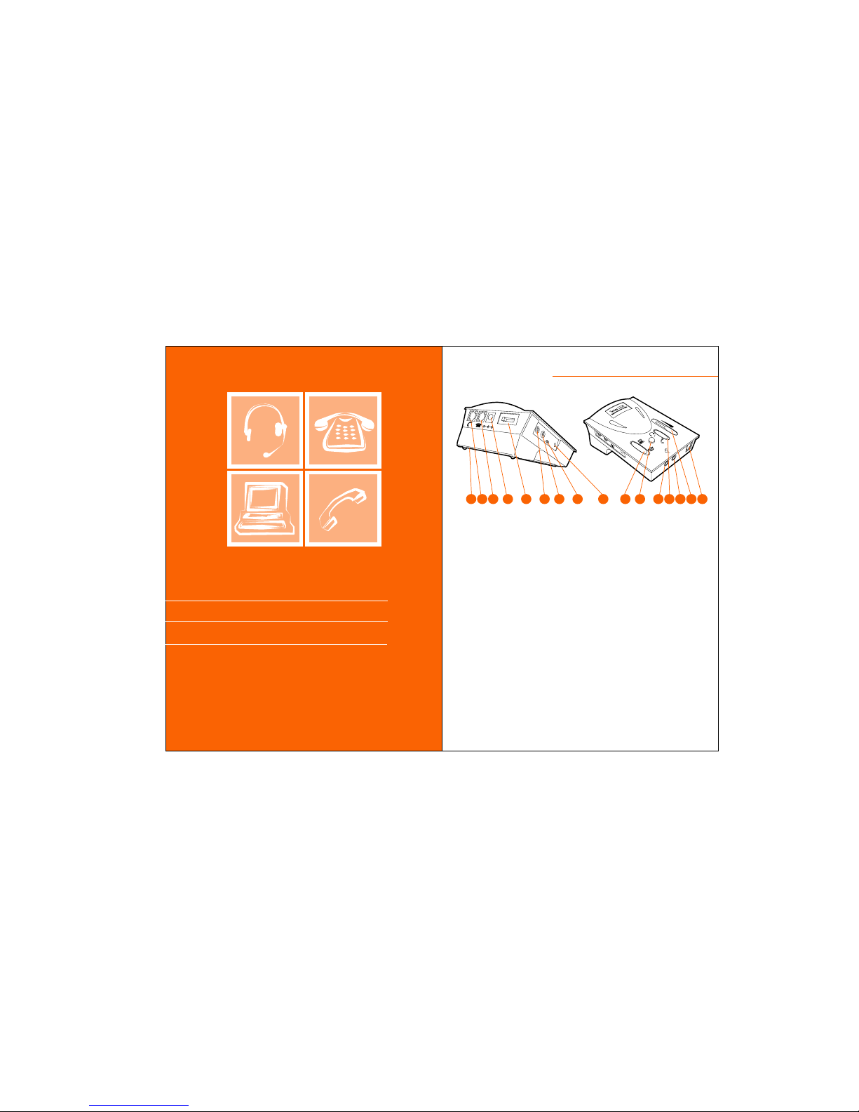 Plug in the telephone headset to the RJ-11 Modular Jack (12) on the front