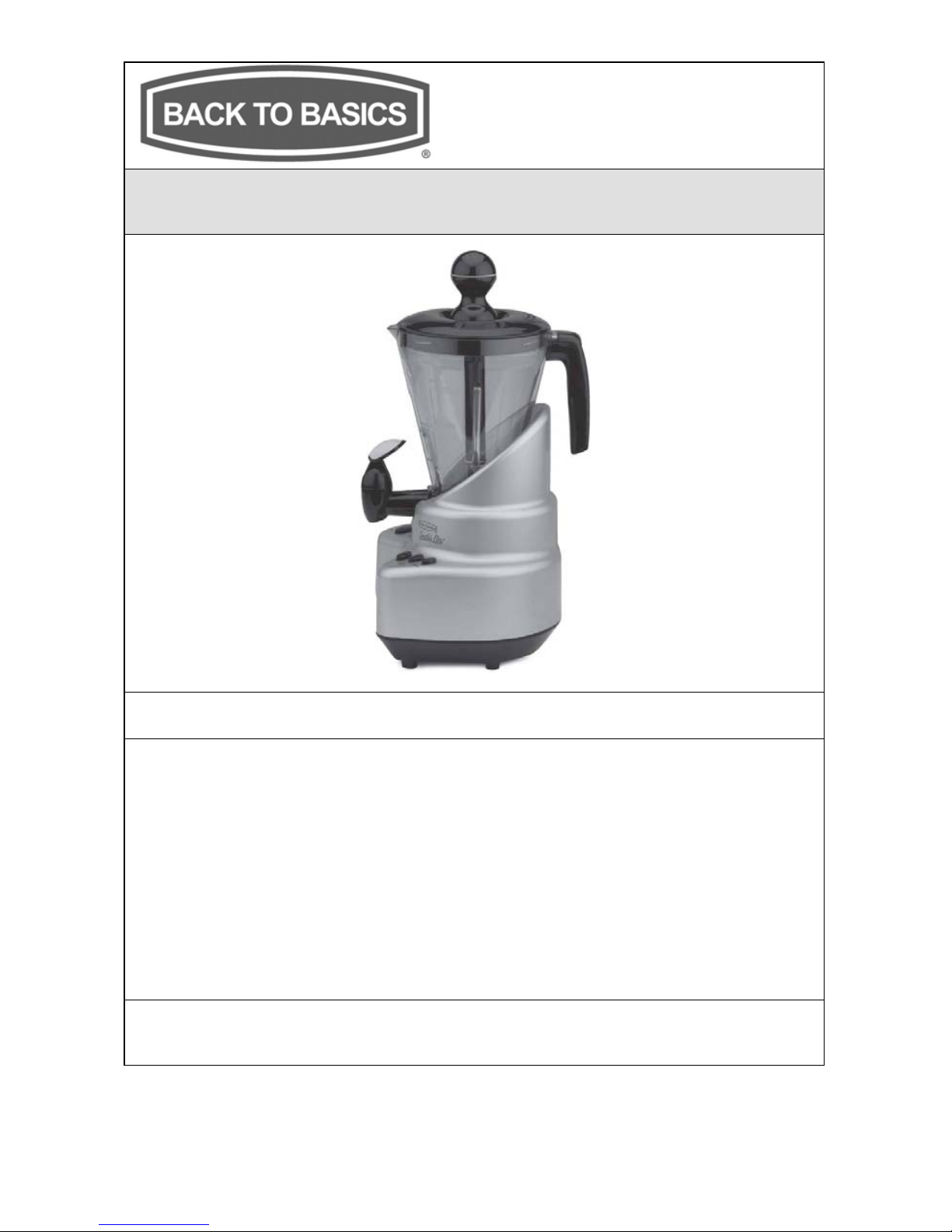 Back to Basics Blender Express Manuel utilisateur