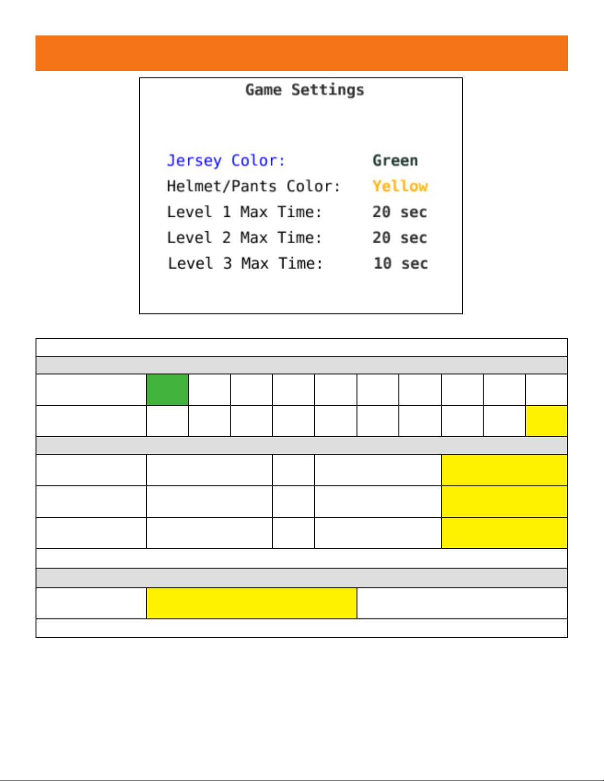 GAME SETTINGS OPTIONS
