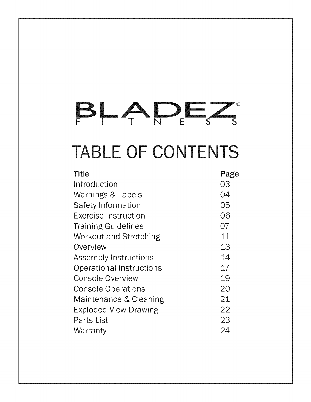 BLADEZ PTS68 Master Bike Manuel utilisateur
