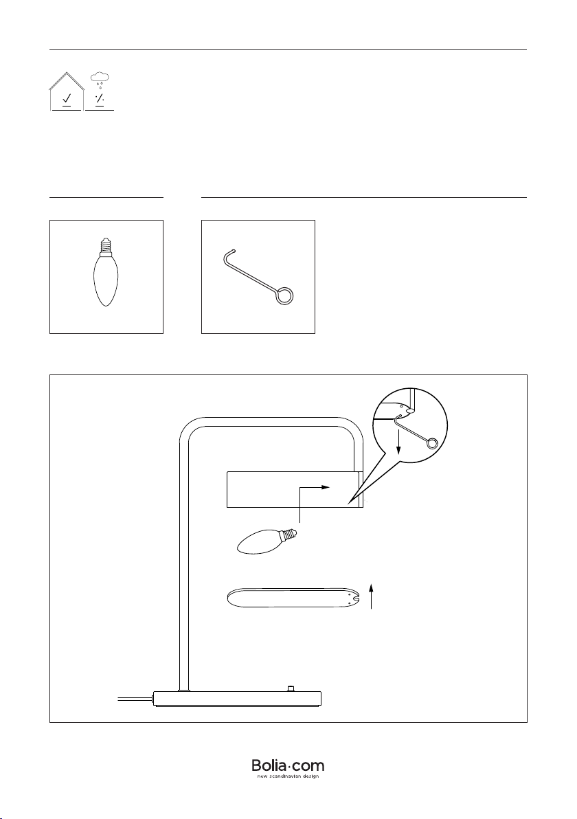 Hvis lampens udvendige ledning bliver beskadiget skal der, for at undgå en farlig situa-