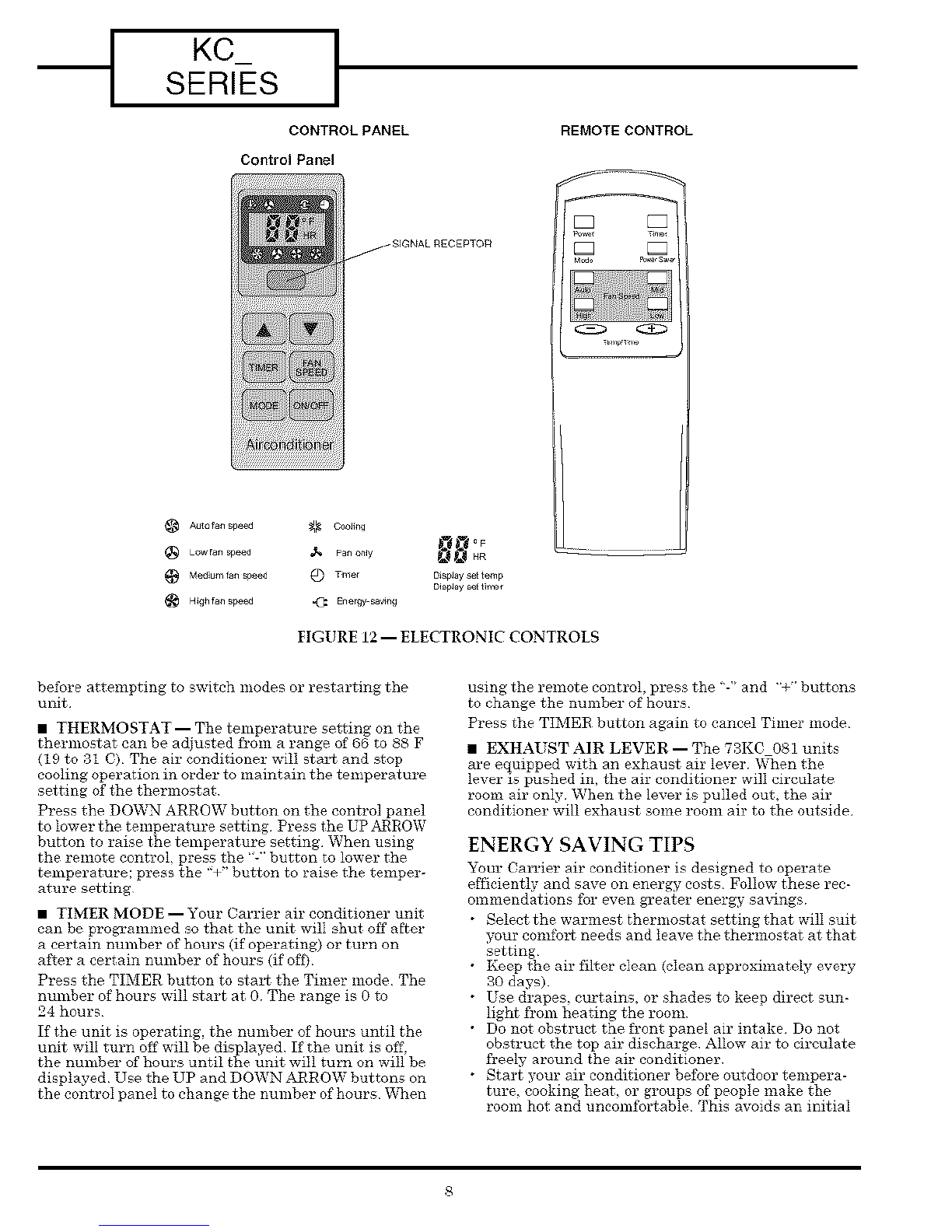 (See Fig 12) The remote control will operate the air