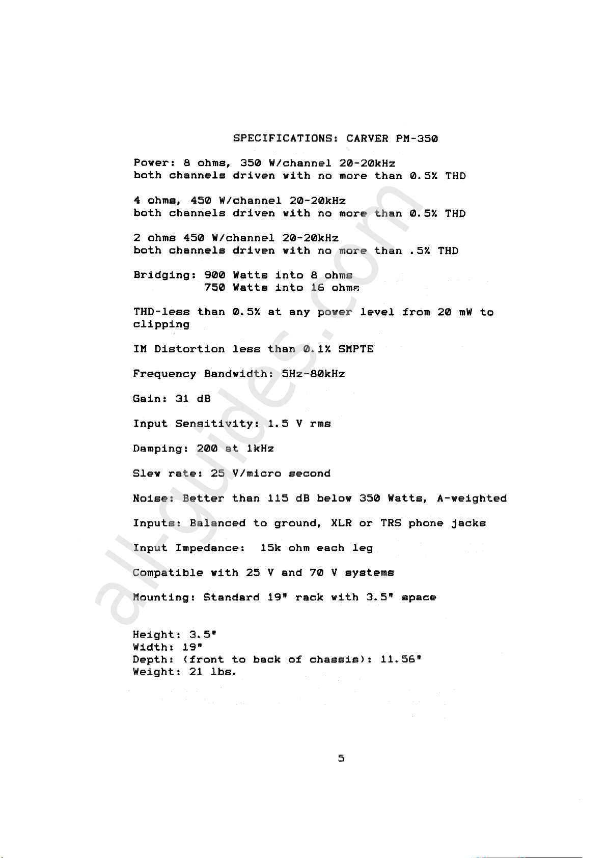 Carver PM-350 Manuel utilisateur