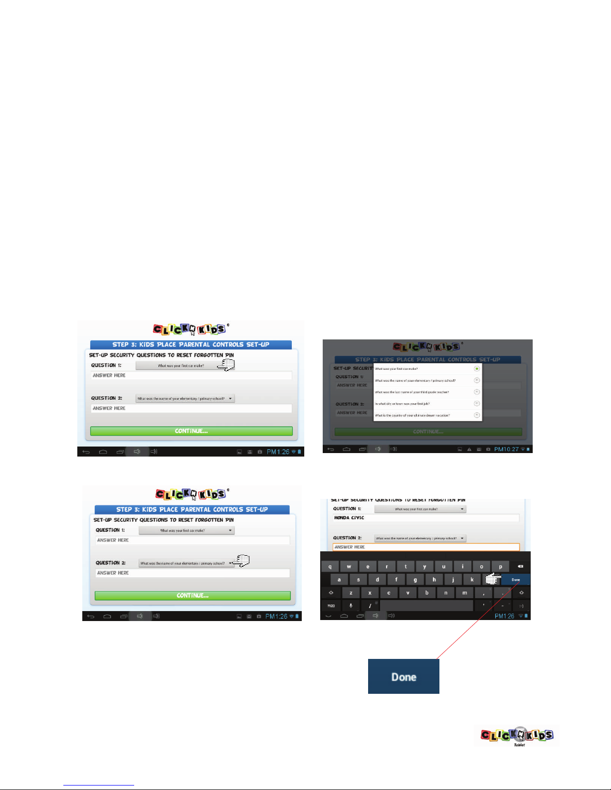 Step 3: Kids Place Parental Controls – Set-up security quesons.