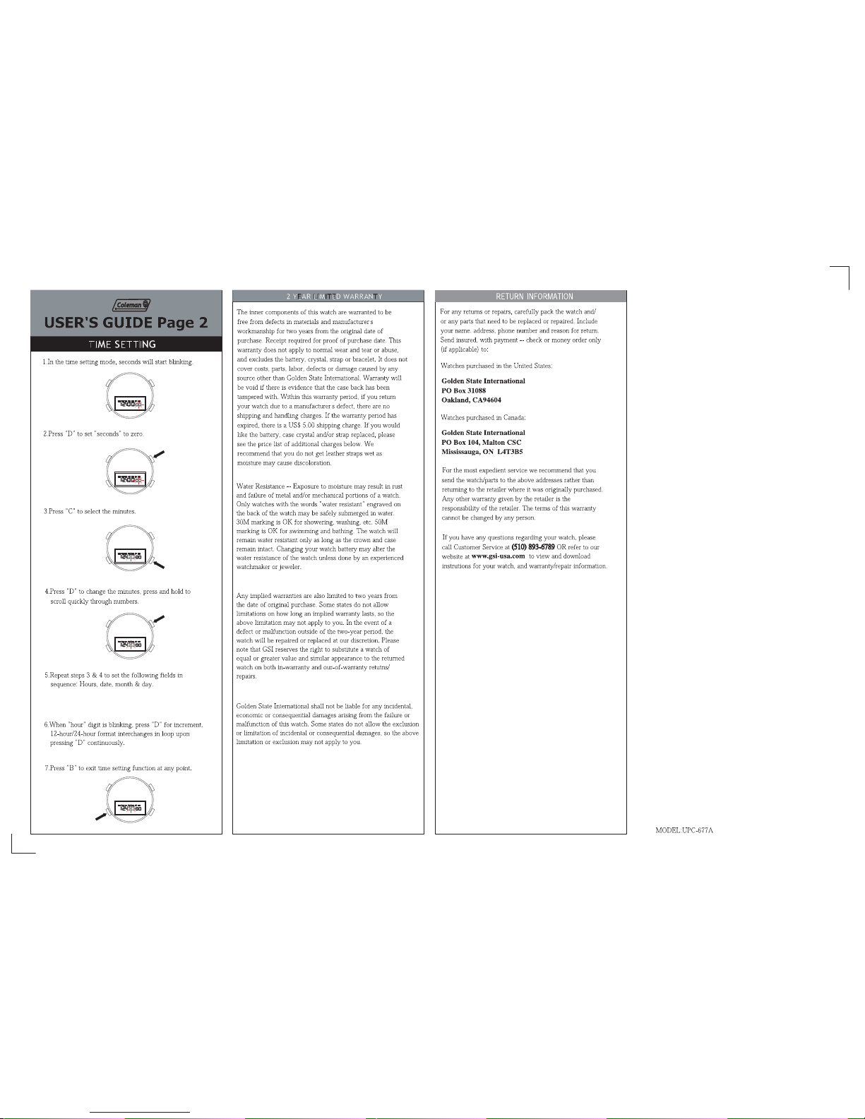 Autres manuels Coleman Montre