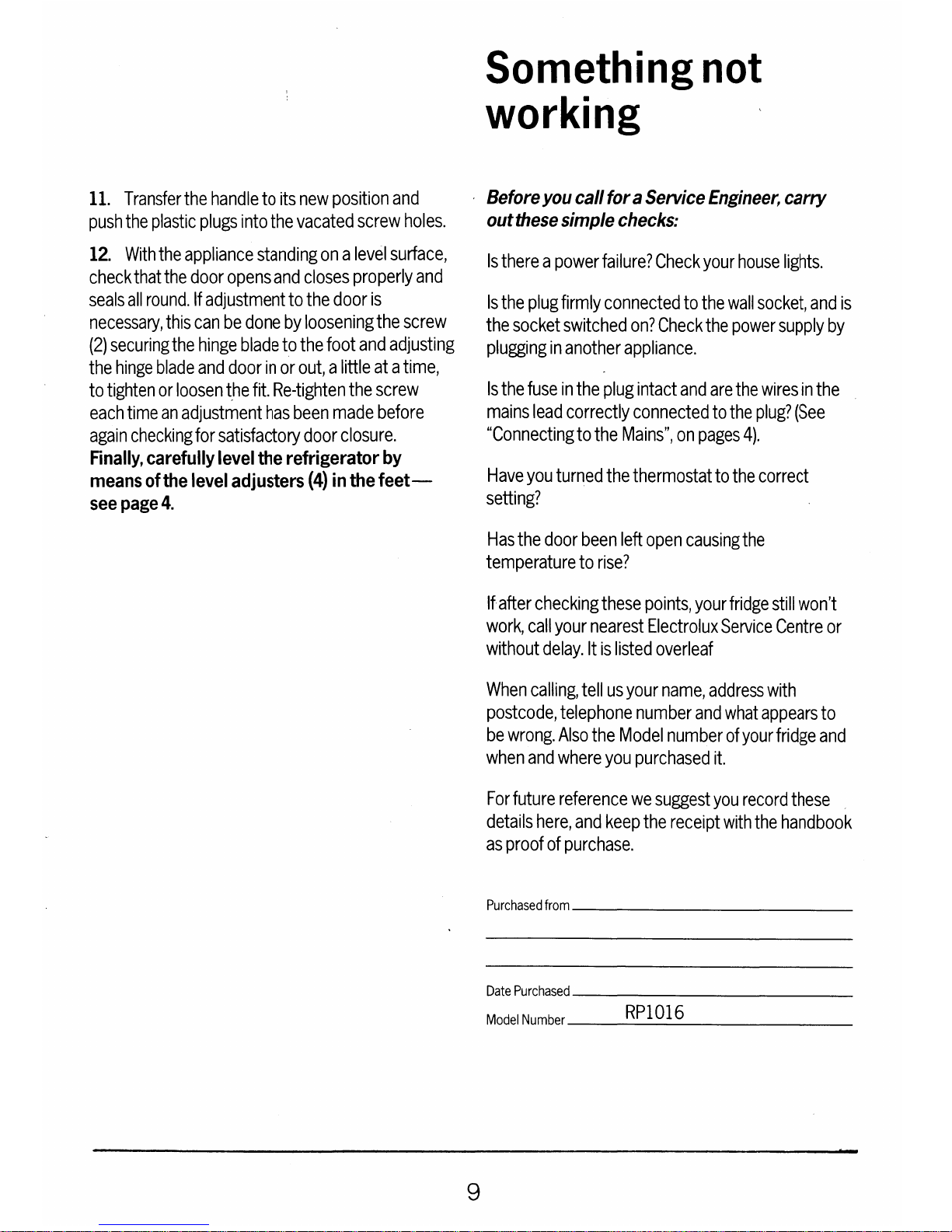 Electrolux RP1016 Mode d’emploi