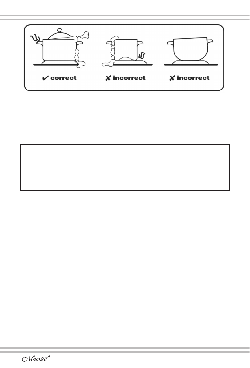 Das Küchengeschirr darf nicht über die Grenzen der Heizkörper (Heizringe)