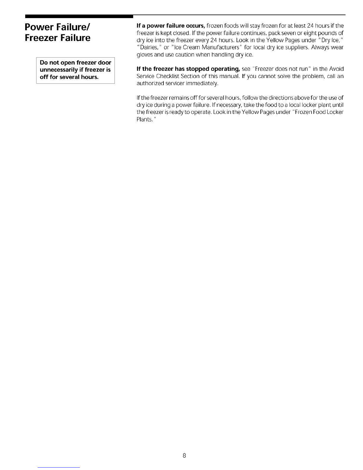 Short Vacations: Leavethe freezeroperating during vacationsof lessthan three weeks.
