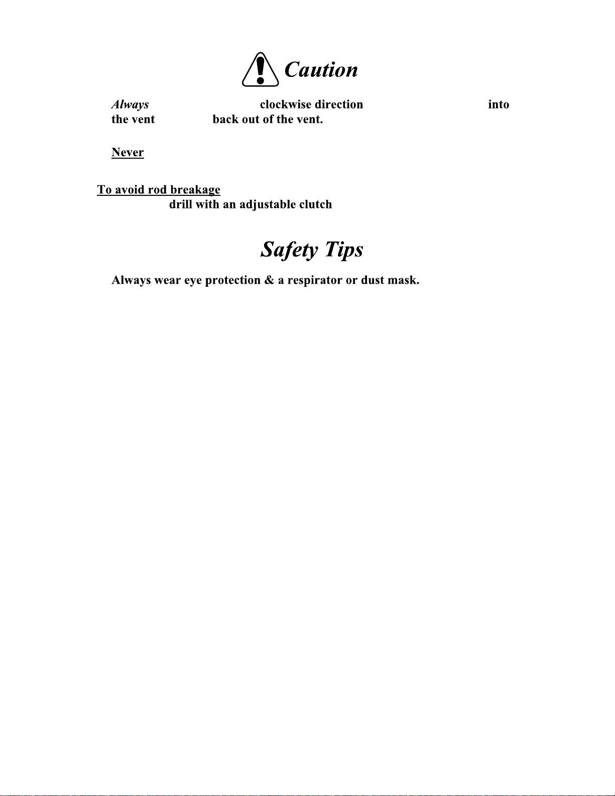 •force the rods or over-torque the rods with the drill. Doing this may result