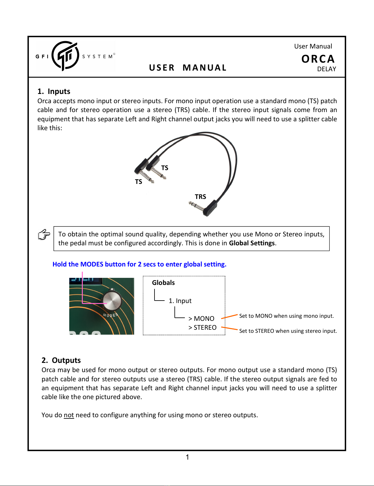 GFI System ORCA DELAY Manuel utilisateur