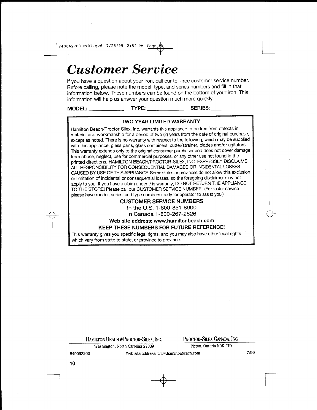 Hamilton Beach 840127400 Manuel utilisateur
