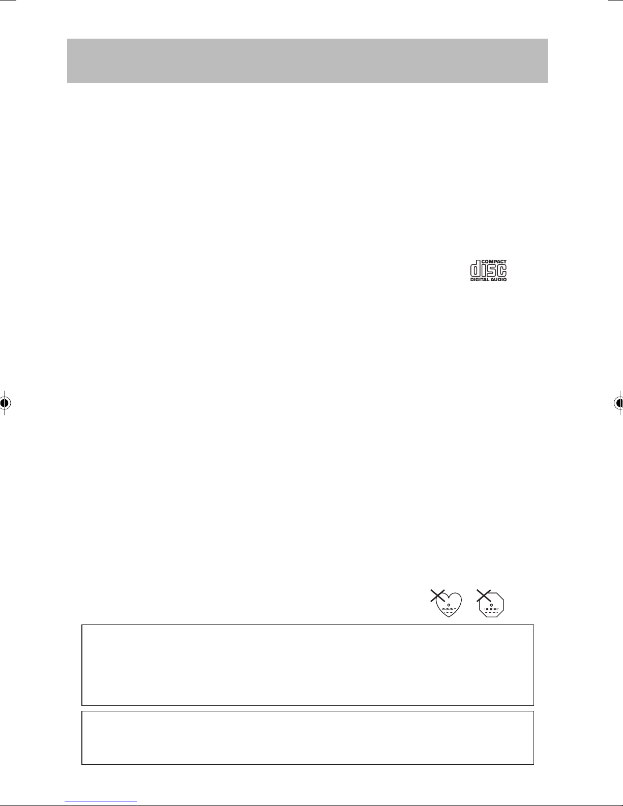• The CD player has wide dynamic range. As a result, if you turn your amplifier’s volume up too