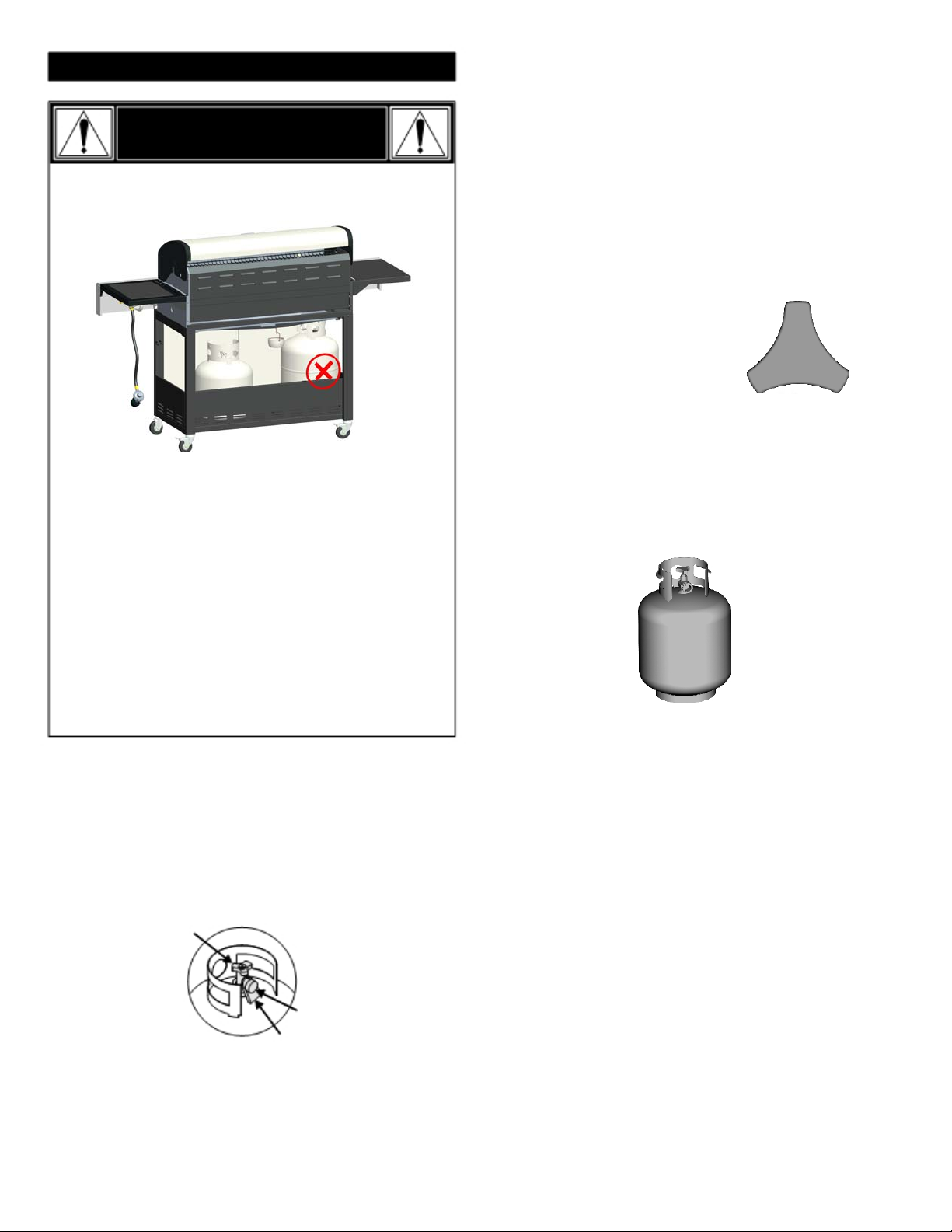 •When LP cylinder is connected to grill, store outdoors in a