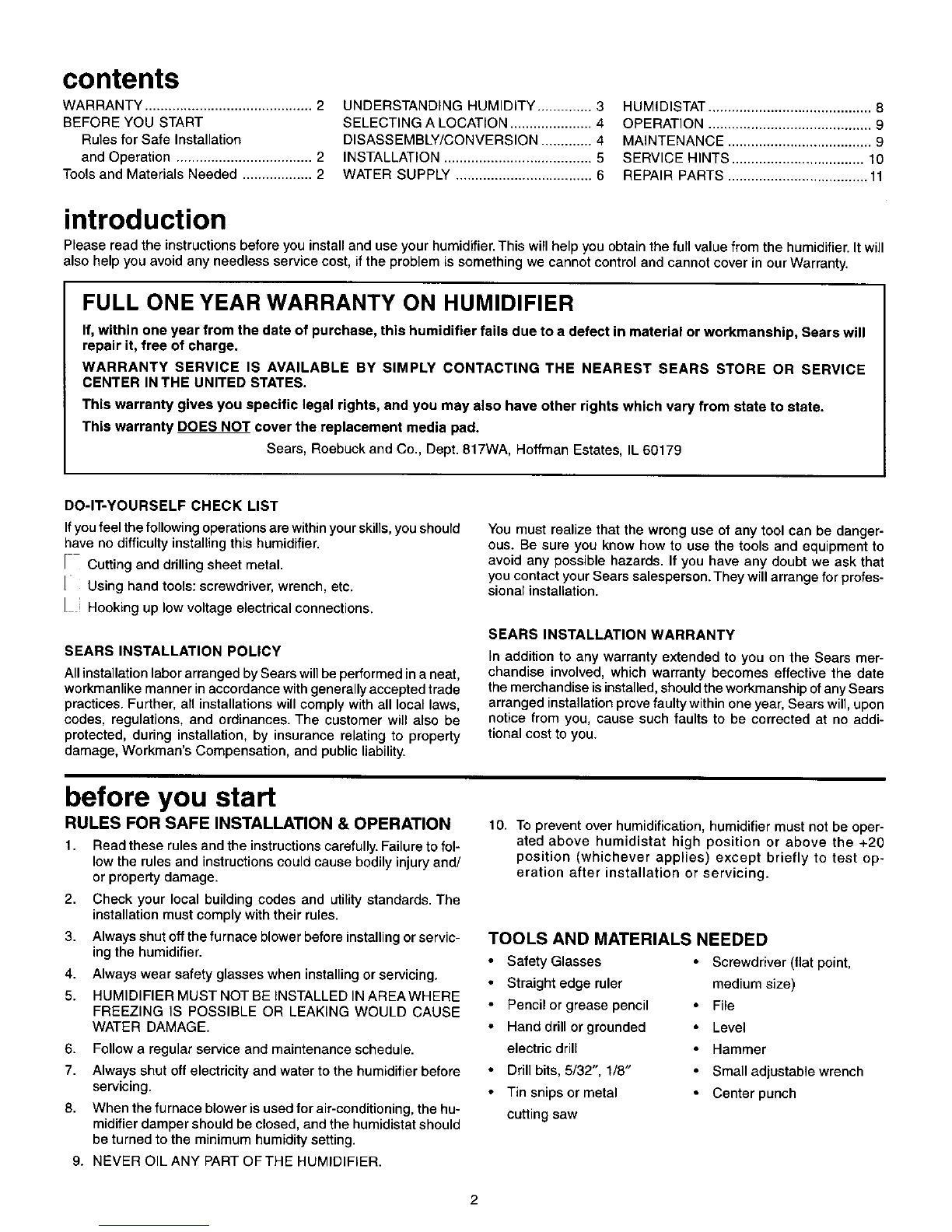 Please read the instructions before you install and use your humidifier. This will help you obtain the full value from the humidifier. It will