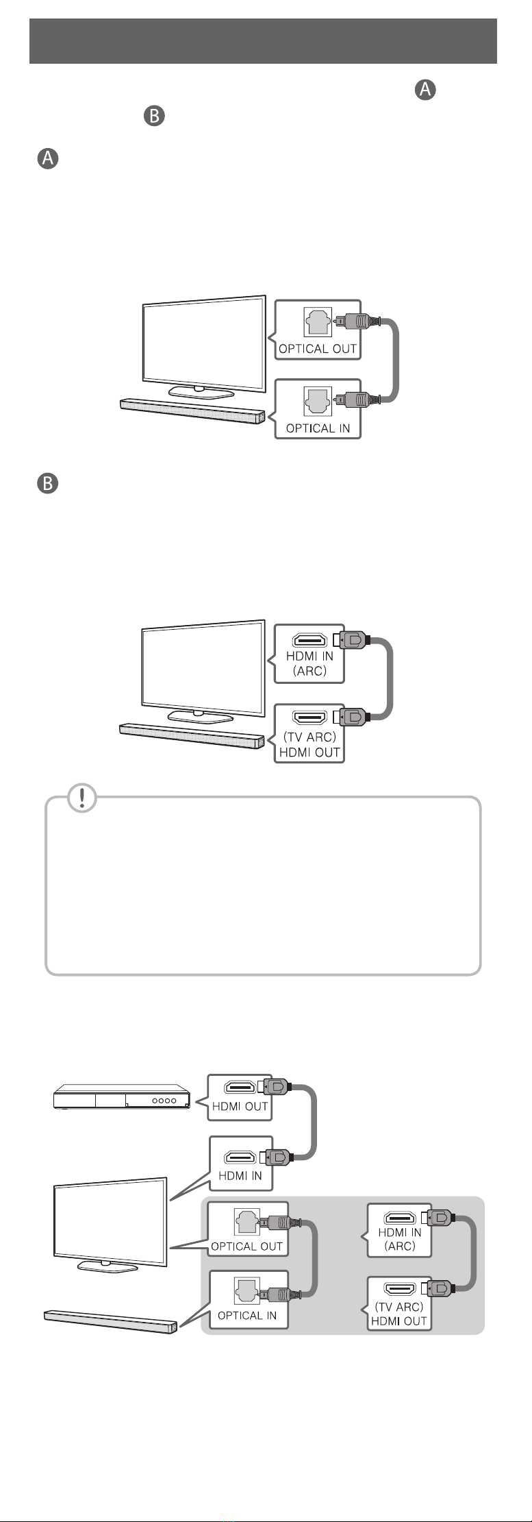 Connect the sound bar and TV using Optical ( ) or
