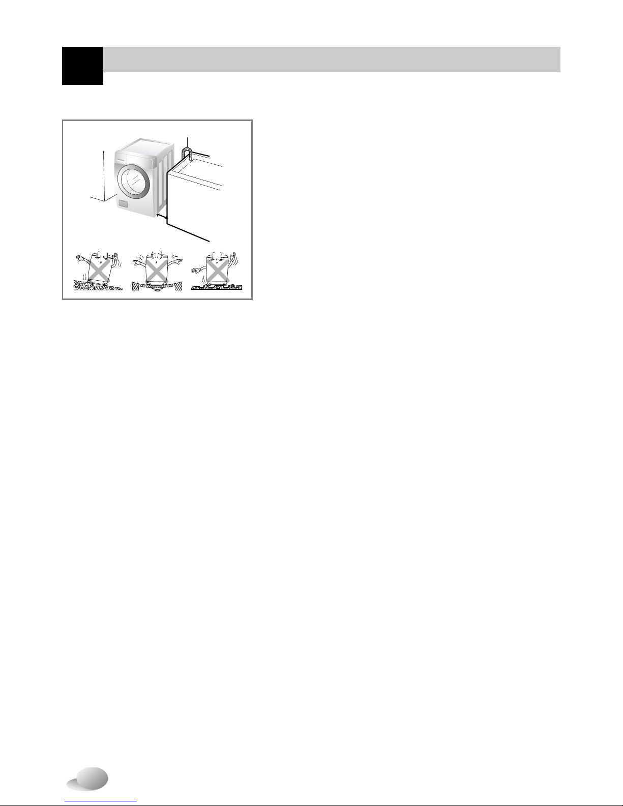 • Do not install or store the washer where it will