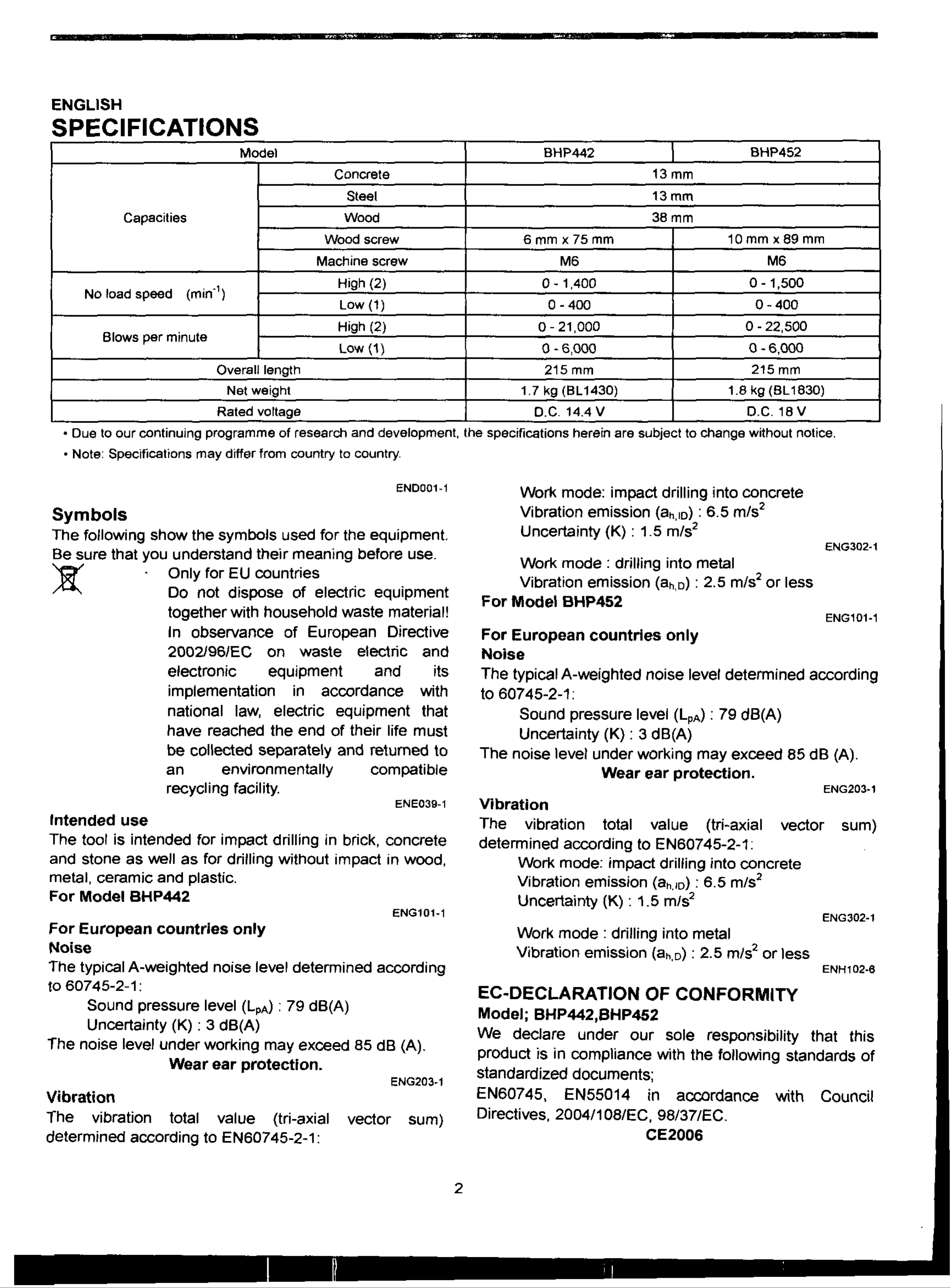 Makita BHP442 Manuel utilisateur