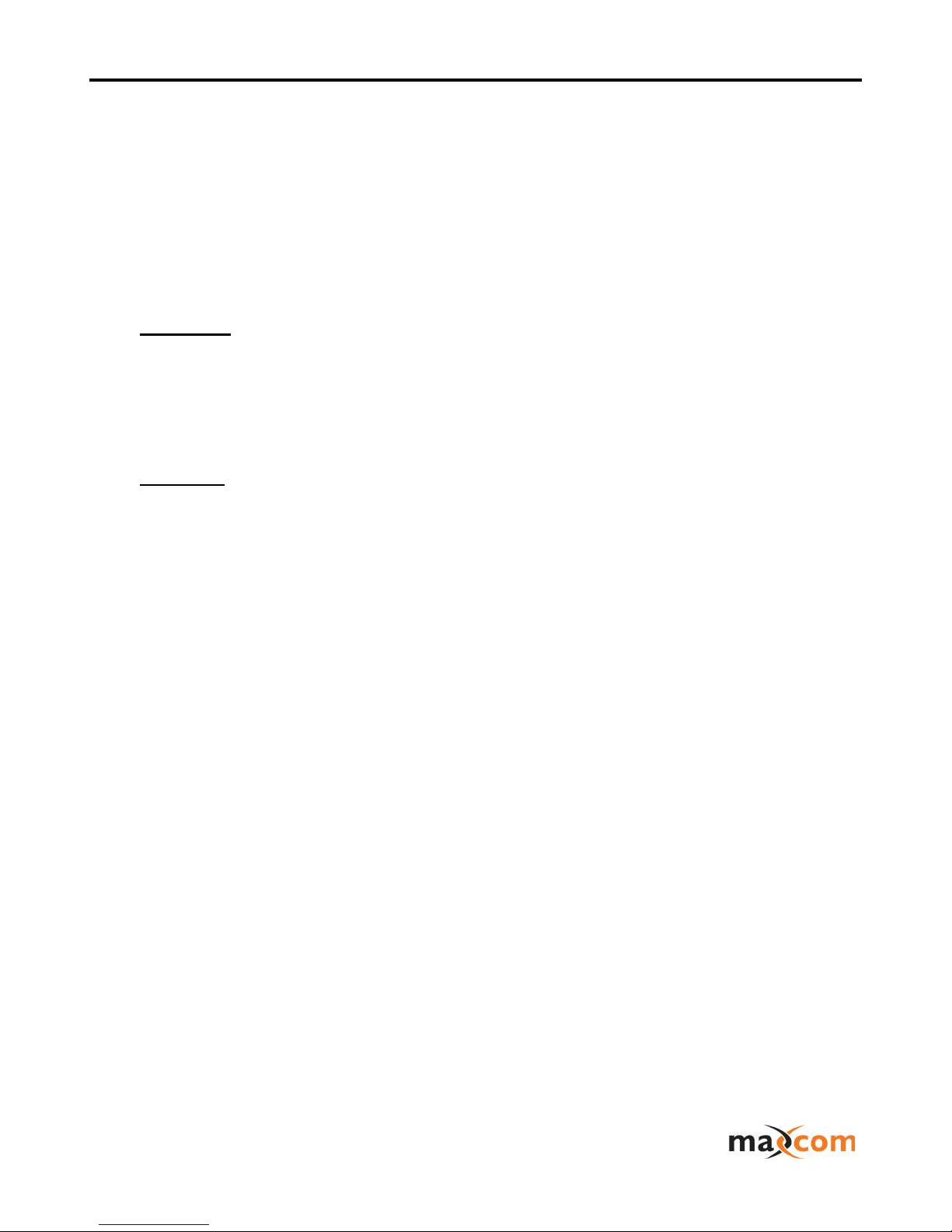 MAXCOM PRODUCT SPECIFICATIONS