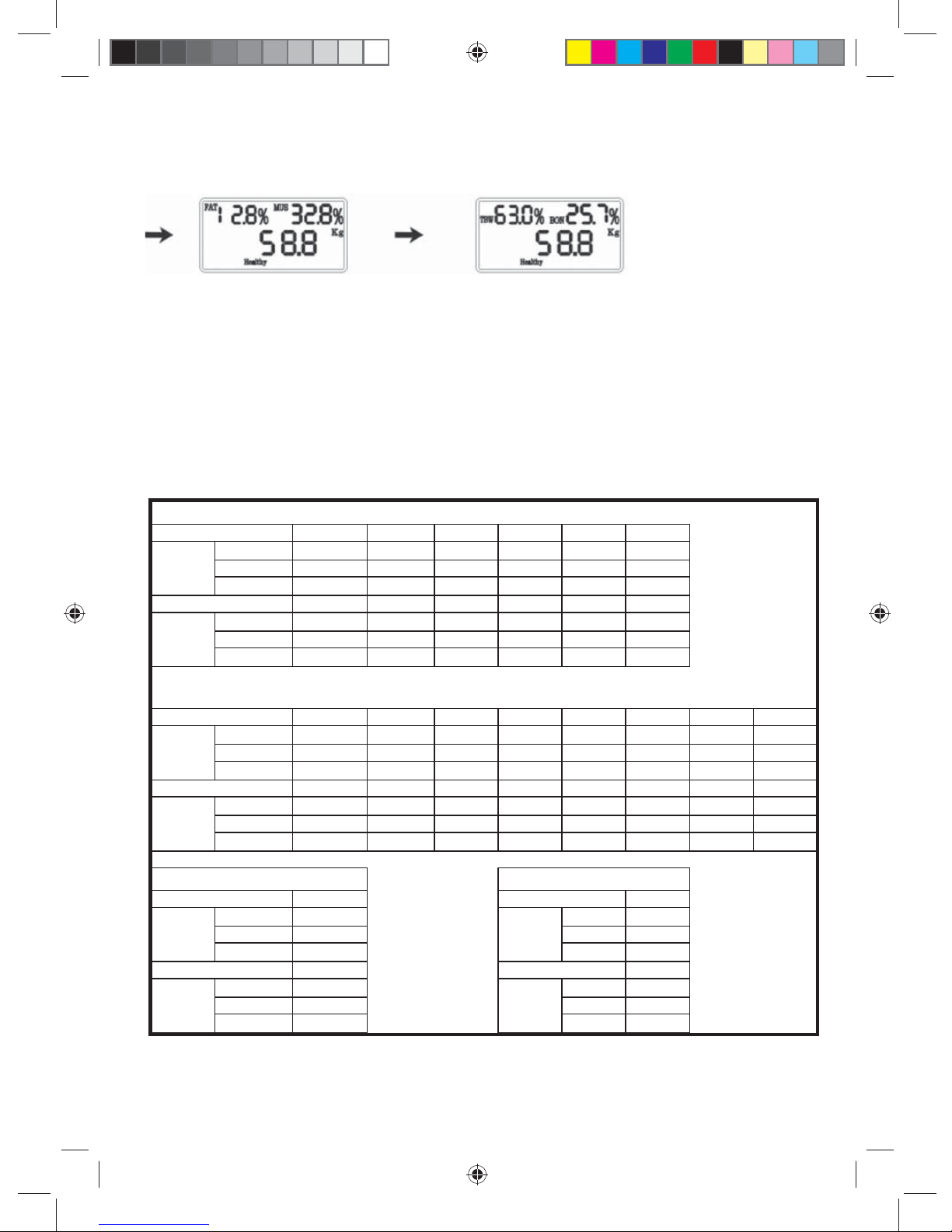 Your weight will remain on the display, but the fat and muscle, and the water and bone percentages