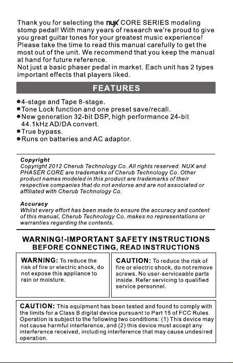 nux Phaser Core Manuel utilisateur