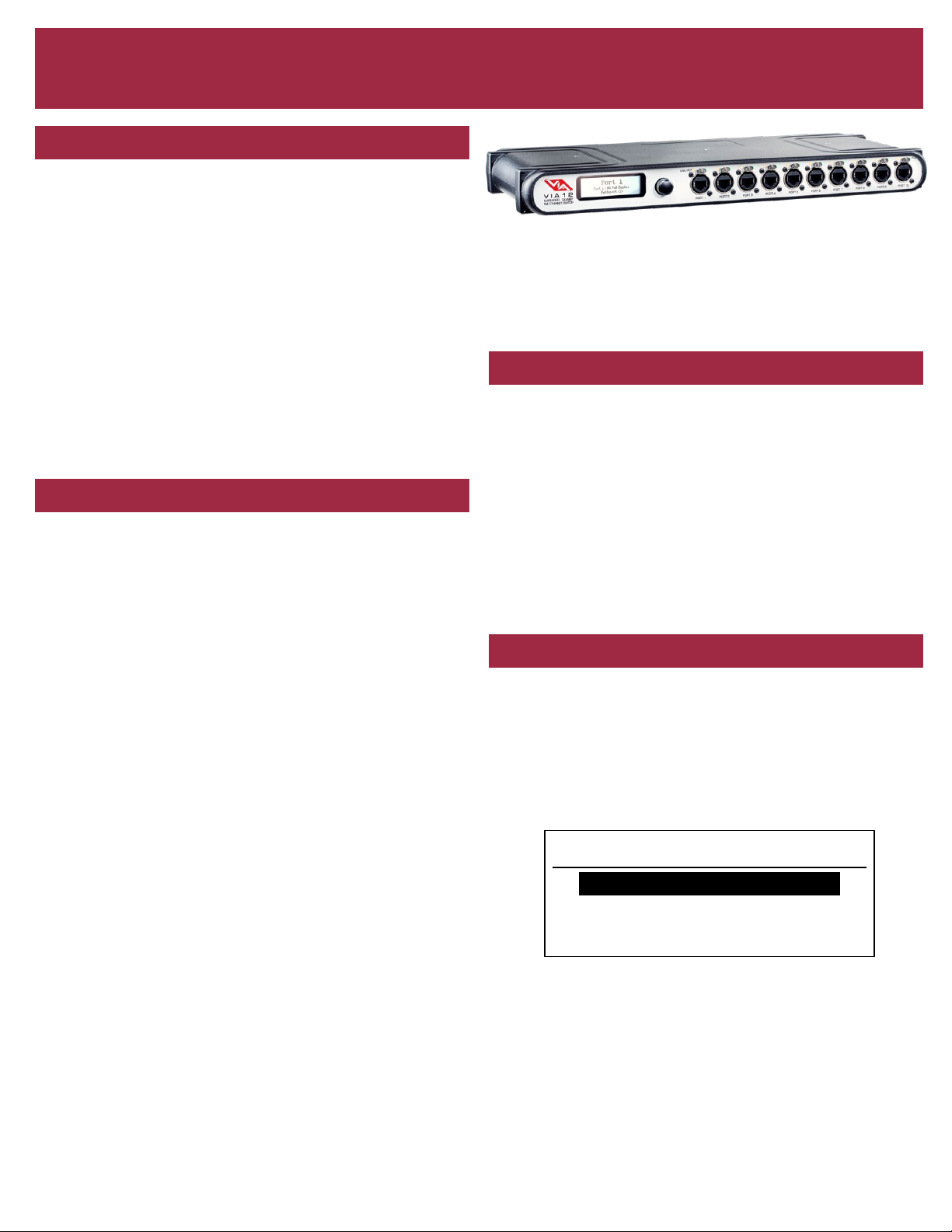 VIA Ethernet Switches are intended specically for signal routing