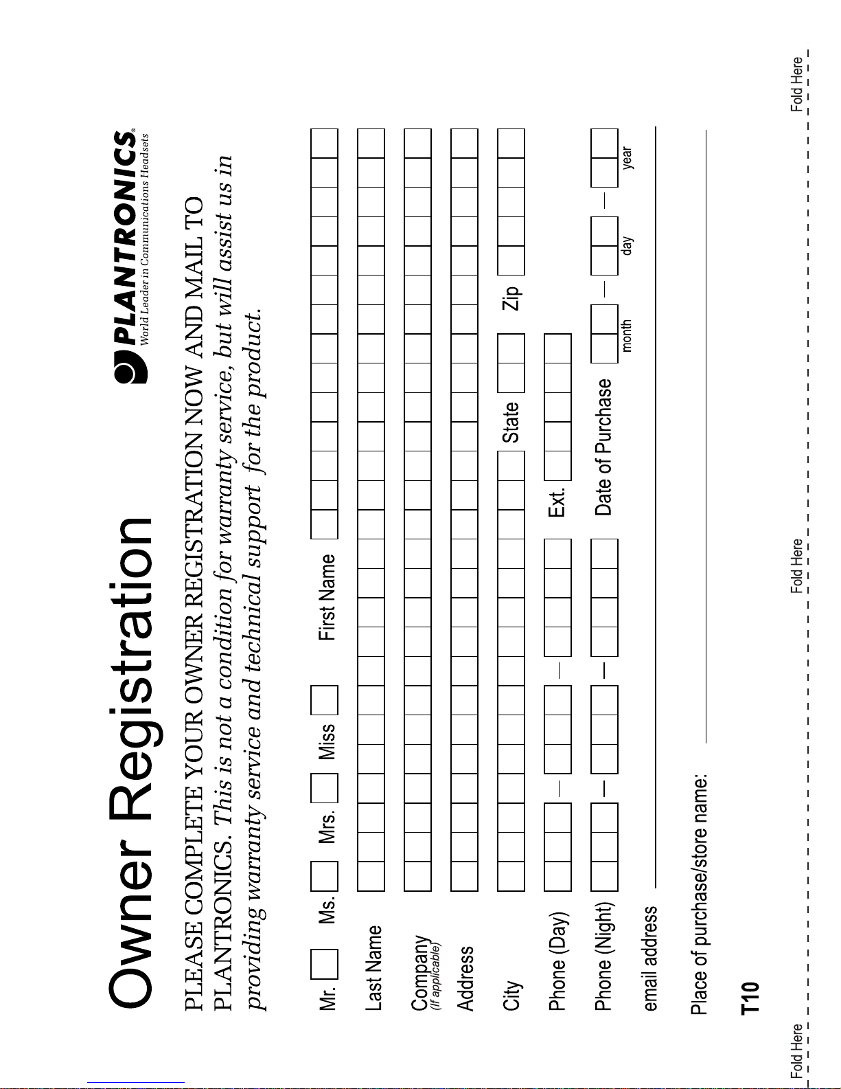 Plantronics T10 Manuel utilisateur