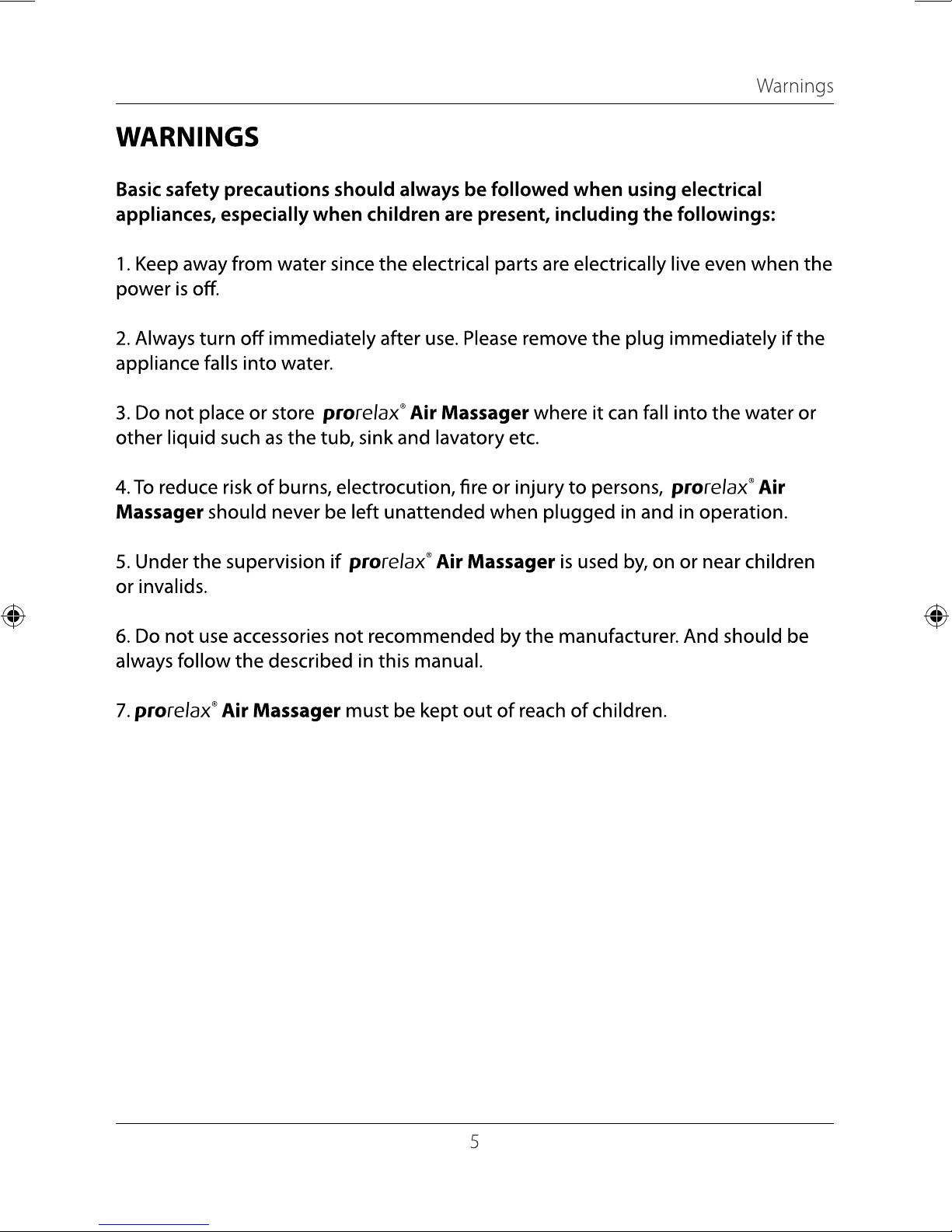 Autres manuels Prorelax masseur