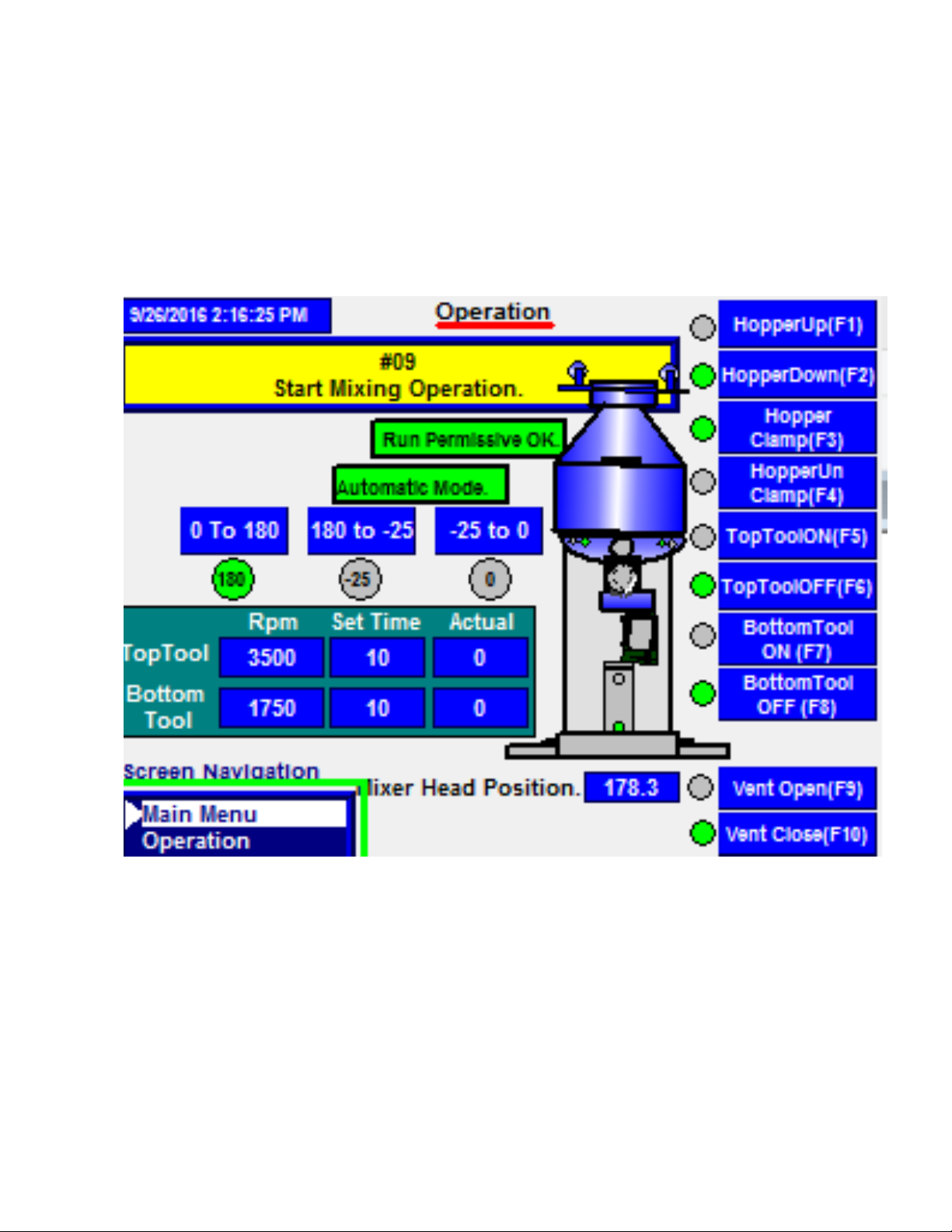 Select Hopper Up push button or F1 on PLC