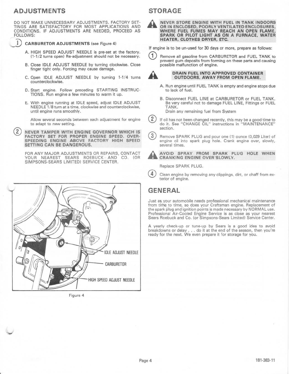 h C. NEVER STORE ENGINE WJTH FUEL IN