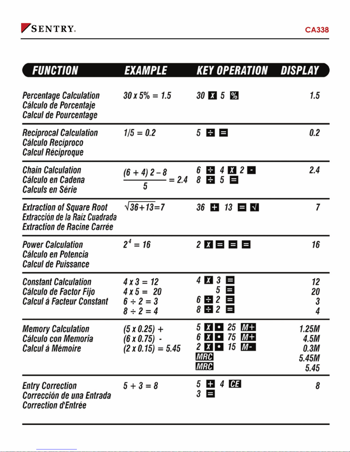 Autres manuels Sentry Calculatrice