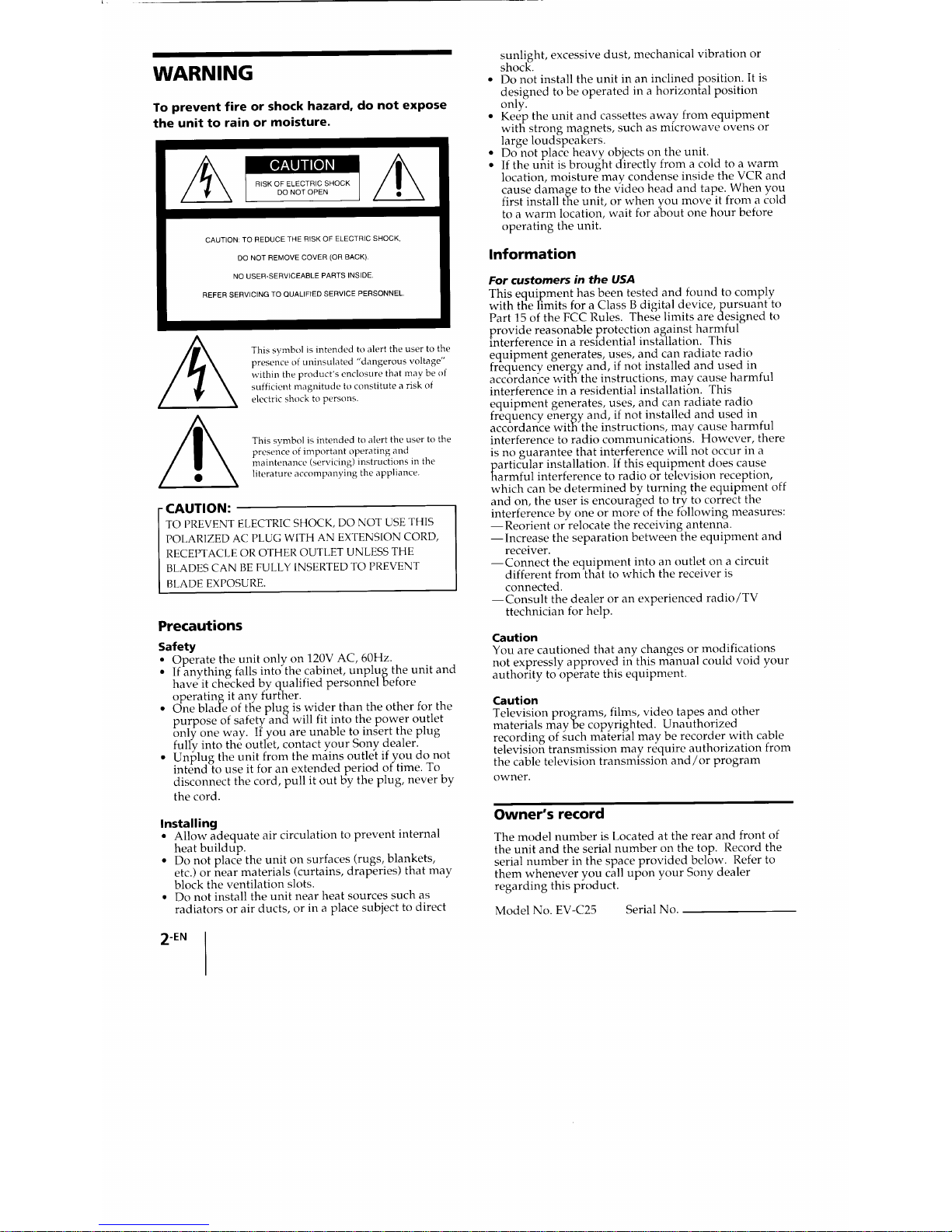 Sony Video 8 EV-C25 Manuel utilisateur