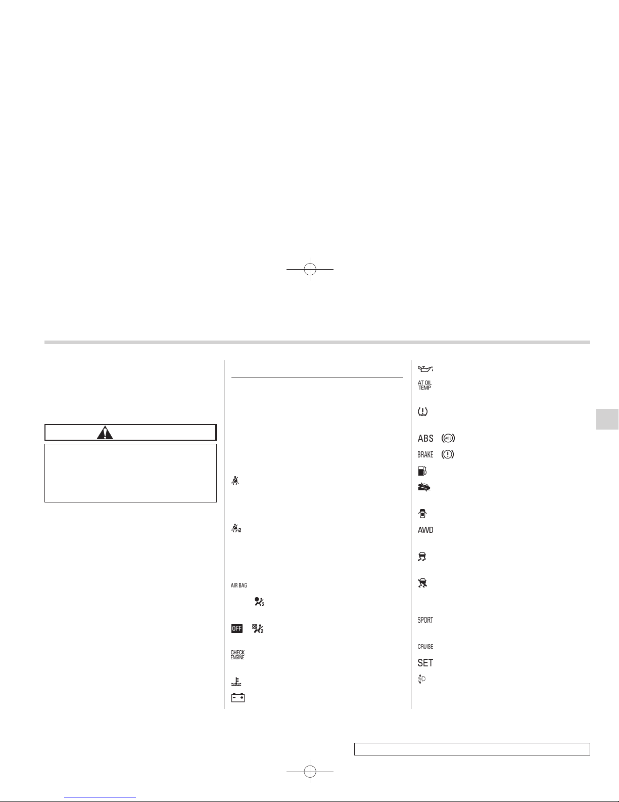 All-Wheel Drive warning light (AT models) .......... 3-18