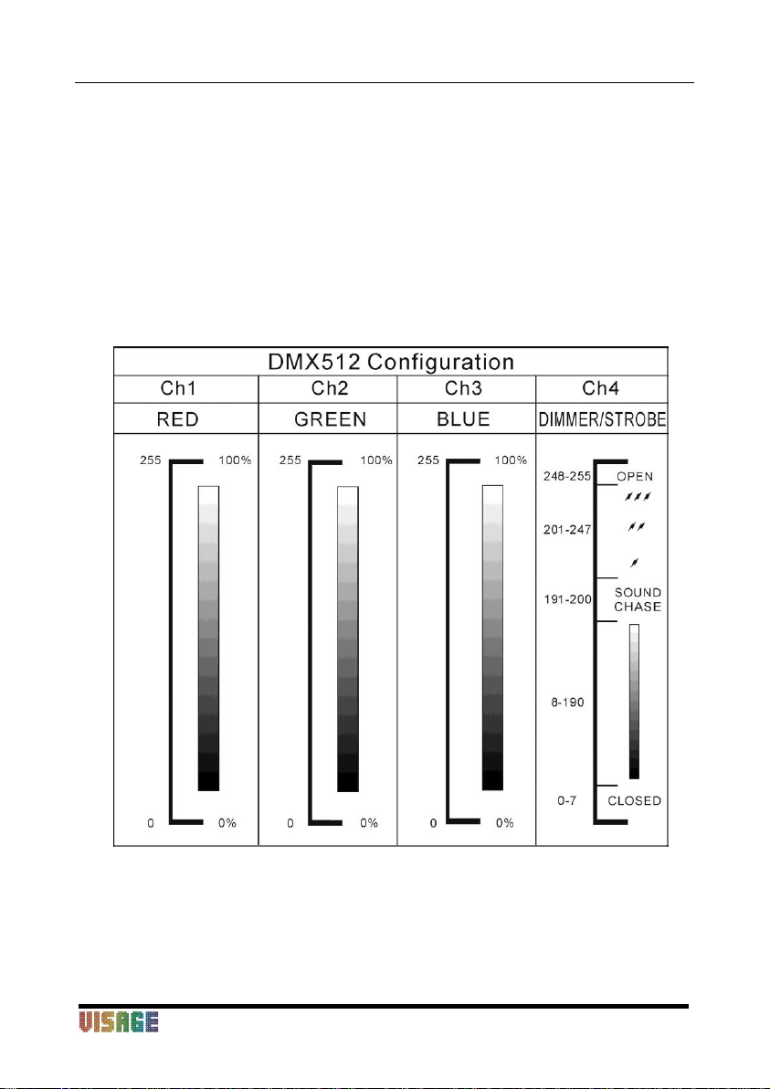 adapter. The fixture uses four channels. Please refer to the following diagram to use